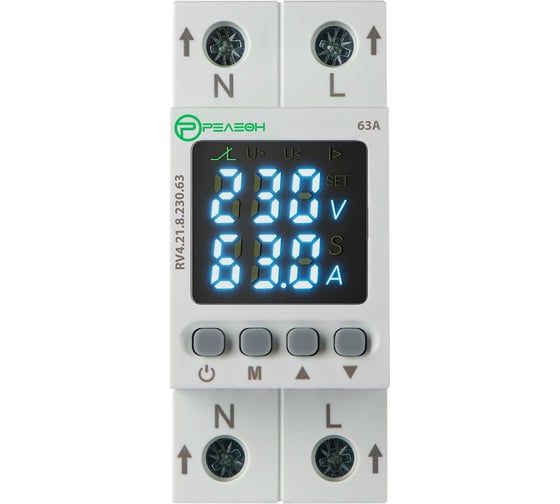 Реле контроля напряжения и тока RV4.21.8.230.63 1L (230В AC) 1НО 63А, защищает ваше оборудование от нестабильного напряжения в сети (перенапряжения, провалы, перекосы фаз), а также защищает от перегрузки по току. Это интеллектуальный менеджер нагрузки. Реле монтируется на DIN-рейку.
