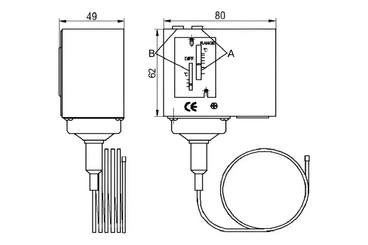 Термореле с длиной капилляра от 1 до 12 метров производятся в Китае по заказу и под контролем компании RGP. Температурные реле отличаются простотой настройки, установки, подключения и надежностью в эксплуатации. Длина капиллярной трубки выбирается при заказе.