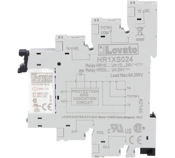 Реле в тонком корпусе+розетка LOVATO Electric винтовой зажим, 1 перекидной канал, 6A 12VAC/DC HRA101CE024