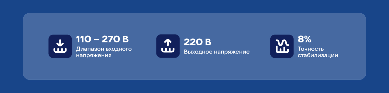 Отлично справляется со своими функциями ! Напряжение снижалось до 135в при нагрузке в 4кВт справился на Ура ! Реле немного пощёлкивают, но их особо и не слышно(когда рядом находишься), тем более стабилизатор находится в не жилом помещении. Рекомендую !