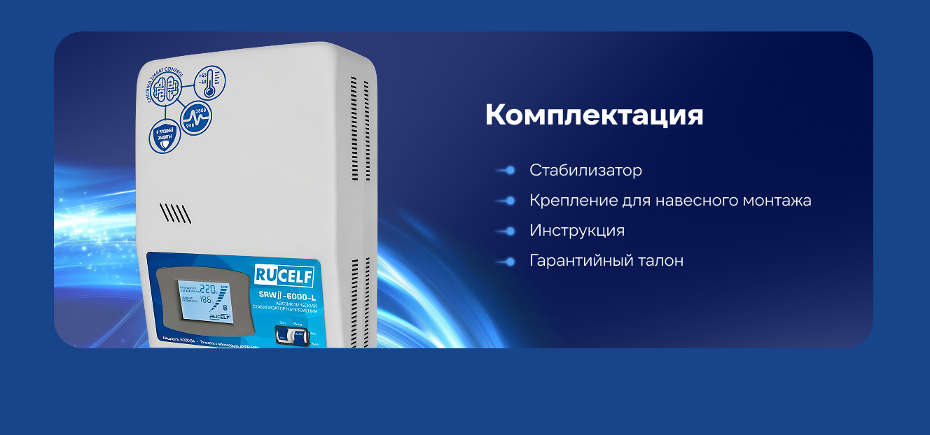 Вопросы и ответы о стабилизаторе напряжения RUCELF SRW II-6000-L 00001379