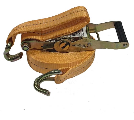 Стяжной ремень в сборе с крюками и храповым механизмом изготавливается из высококачественной полиэфирной ленты, используемой для изготовления грузовых ленточных стропов. Лента стойка к механическим воздействиям и агрессивным условиям среды.