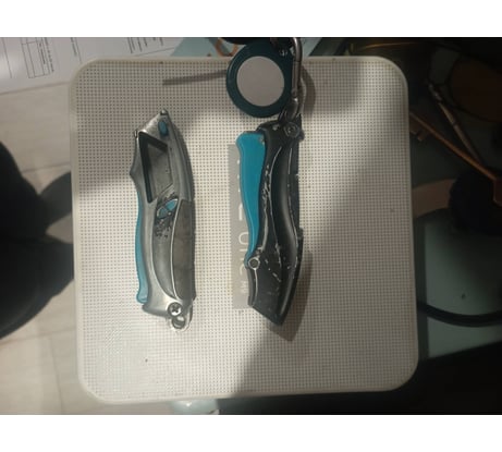 Лезвие плохо фиксируется в открытом состоянии, убираеся само при нажатии. Через неделю работы вообще перестало держаться и стало выпадать из ножа. Материал ножа - какой то цинковый сплав, выступы, которые должны удерживать лезвие, стерлись! Выброшенные деньги.