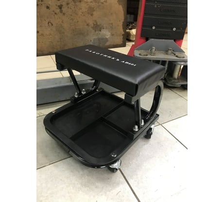 Удобное сиденье. Хорошо помогает, когда меняешь самостоятельно резину в гараже, или же проводишь ревизию тормозной системы авто. На корточках не очень то удобно.