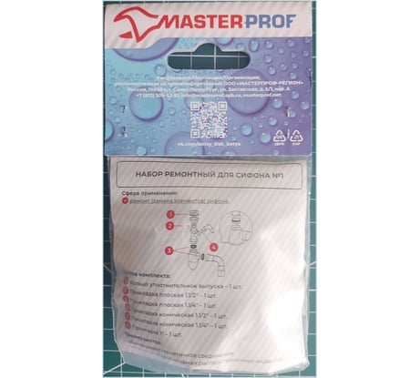 Ремонтный набор для сифона MasterProf №1 универсальный ИС.131609 позволяет заменить прокладки и гайки на самых распространённых видах сифонов, в том числе и на сифонах со штуцером под слив стиральной машины.
