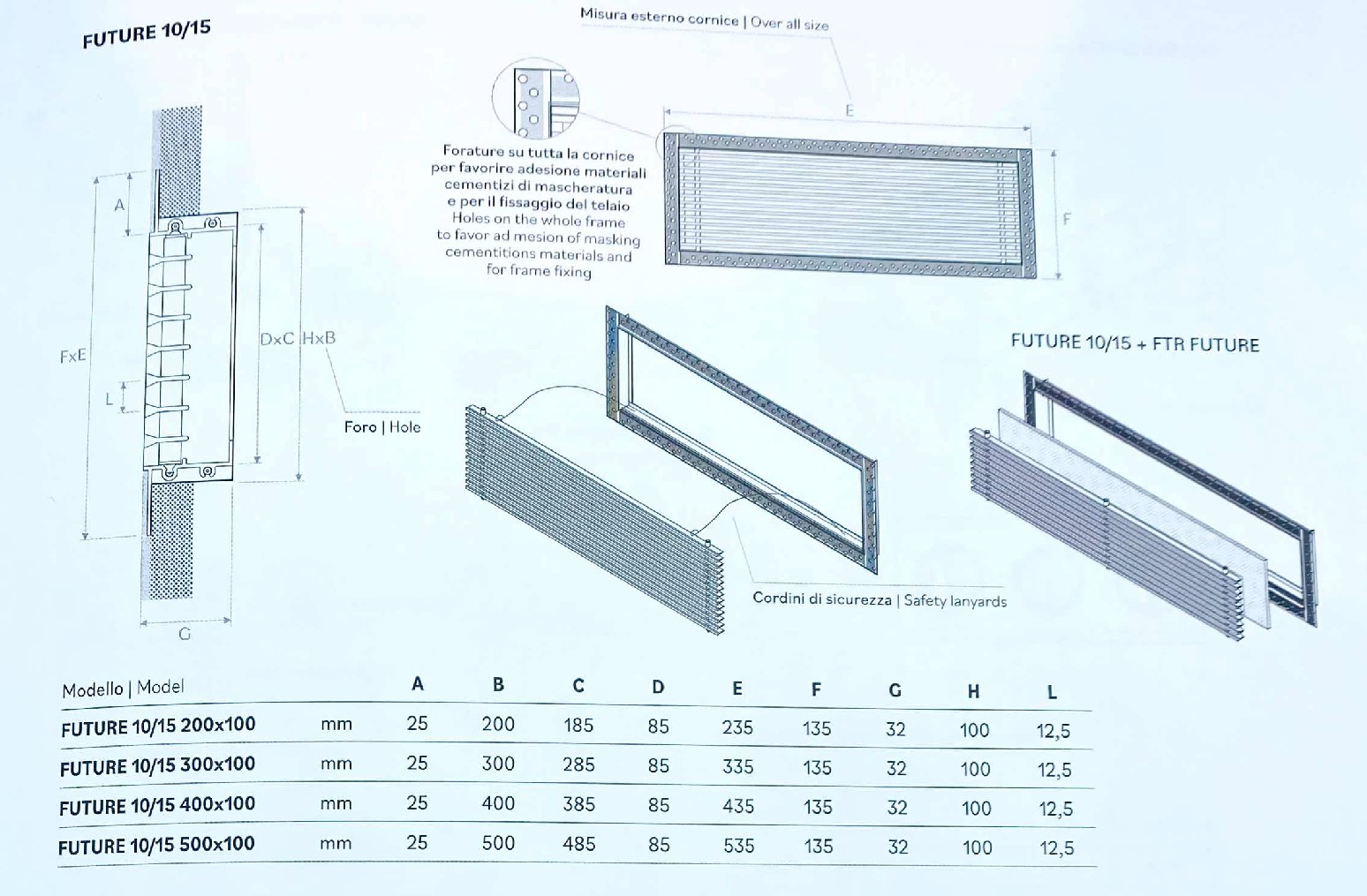 - Итальянская декоративная 200x100мм решетка FUTURA10