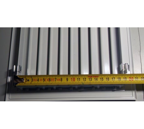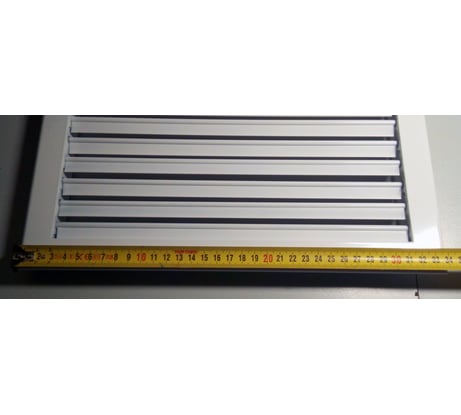 Решётка металлическая. Лёгонькая, не магнитится, но оно и понятно – алюминиевая. У жалюзи, каждая из ламелей независимая. Одна из ламелей довольно заметно болтается на оси и потому подвержена силе тяжести больше, чем другие. Размеры указаны неправильные. Обещано 300 мм по горизонтали, на деле 340 мм, указали 200 по вертикали, на деле 235 мм. Установочный размер написано 209 мм (ну… с самого начала было сомнительно, уж слишком мал), на деле 290 мм (Ага! В ВИ циферки местами попутали!), вот установочный по вертикали верный –190 мм. Забавно, что есть наклейка 300*200 без указания единиц измерения. Если миллиметры, то они в Дании (так называемая родина бренда) не той системы. Поставить, конечно, поставлю, не вопрос, но, придётся изрядно "поработать напильником", чтобы получилось то, что нужно. И да, за лишние хлопоты с напильником из пяти звёзд две оставил себе.