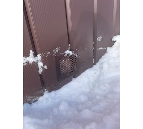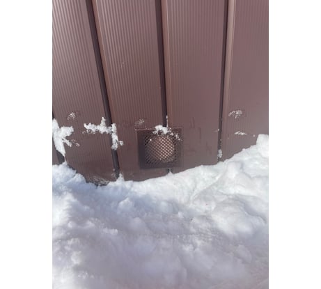 Установил год назад на продухи в цоколе из подполья дома. Ветром не сдуло, снегом не сбило, окраска в целости.