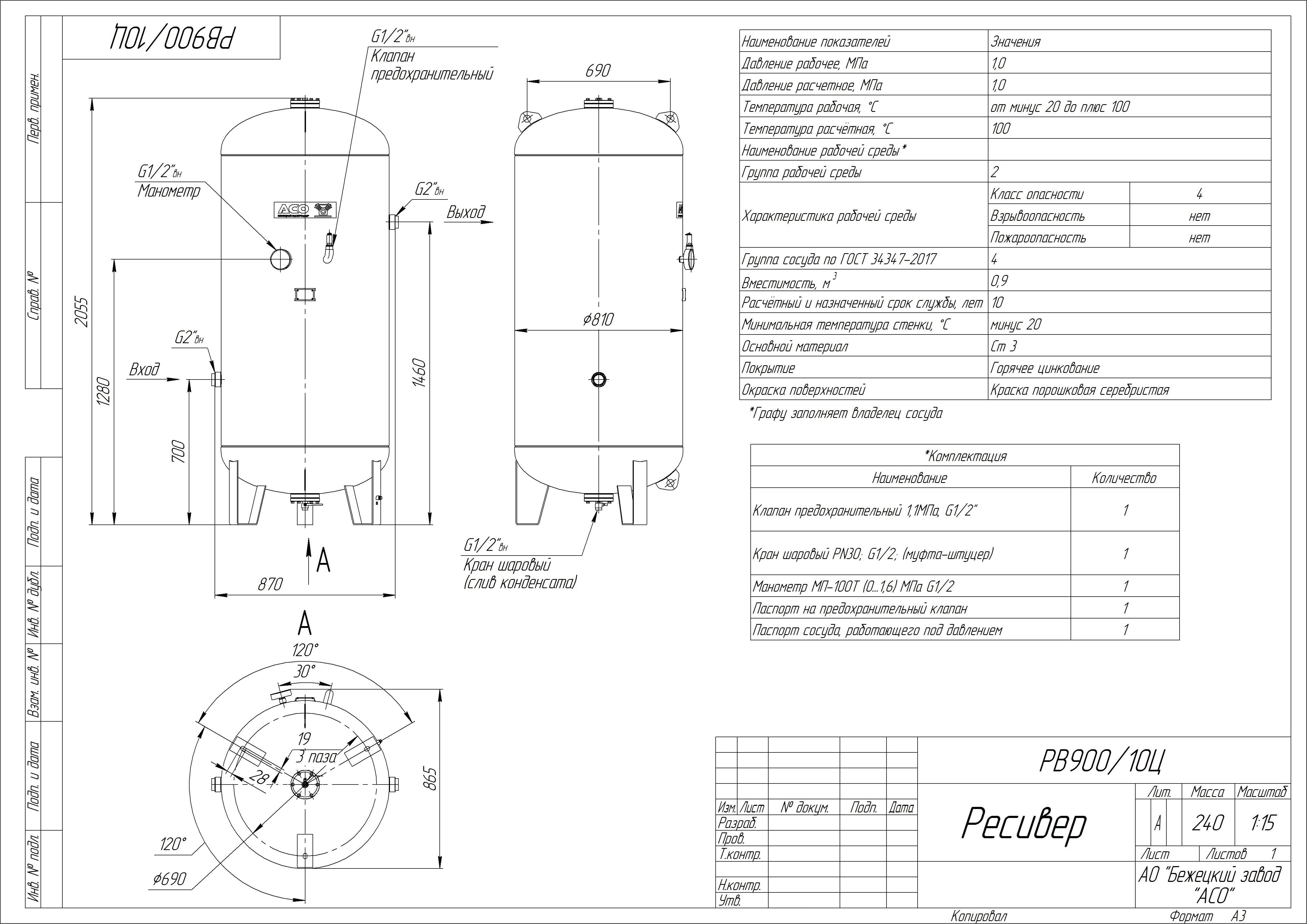 Технические характеристики ресивера Бежецк АСО РВ900/10 Ц