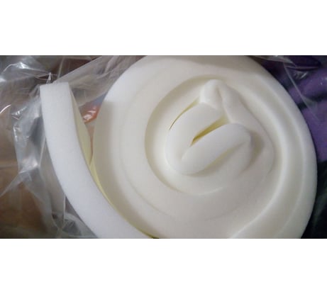 Обычный поролон, белый, но сильный химический запах после распаковки свертка. Надо выветривать несколько суток на открытом воздухе.