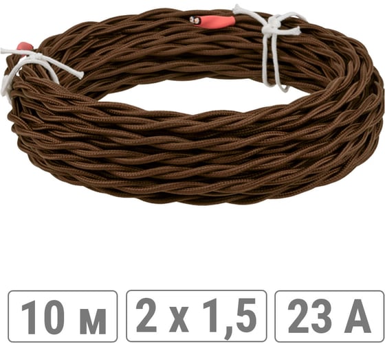 Ретро провод TDM ELECTRIC "Эко" 2x1,5 витой ГОСТ коричневый (10м) SQ2801-0321