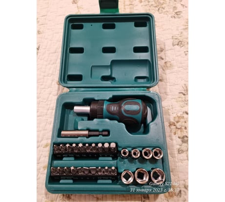уже дарил подруге такую игрушку, но без кейса и кучи бит. себя решил побаловать тоже. эта версия немного отличается от той, что на картинке, но в целом могу сказать, что сильно ничего не изменилось. хотя мне кажется отсек под биты в ручке стал более удобным - раньше крышка была гладкой и сами биты хранились в крышке, то есть открываешь чтобы достать - и все весело сыпется на пол. теперь на крышке выступы чтобы откручивать удобно было и отсек уже в самой ручке! так гораздо лучше. не стесняйтесь, берите! штука выручала не раз, особенно в труднодоступных местах, куда обычная отвертка не лезла