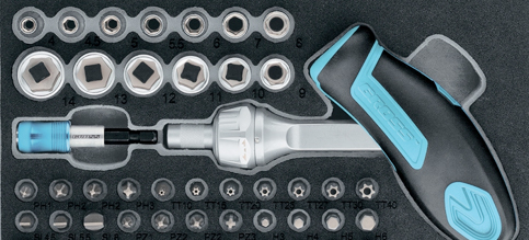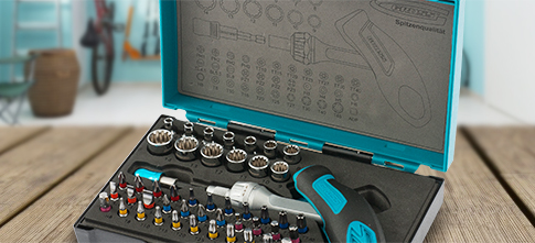 - Универсальное применениеБольшое количество бит разных типоразмеров служат для работыс любыми резьбовыми соединениями