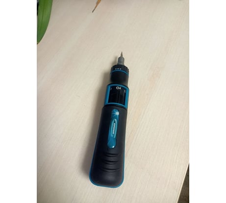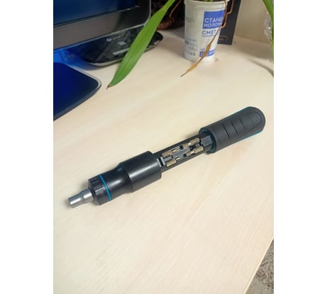 Игрушка для дома. Купил как игрушку, она таковой и оказалась! 6 бит спрятаны внутри барабана, 4 шт лежат в рукоятке. Открываешь как тубус, вращаешь барабан - он может не начать вращаться потомучто что-то там встает неправильно и он не крутится нужно немного обратно задвинуть/выдвинуть. Отвёртка осень толстая и тяжелая, работать одной рукой не риал, как профильная не годится совсем