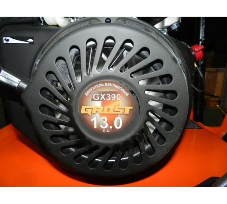 - Надежный двигатель Мотор GX390 S type мощностью 11,3 л.с. с датчиком уровня масла рассчитан на высокие нагрузки