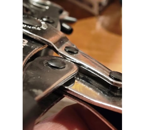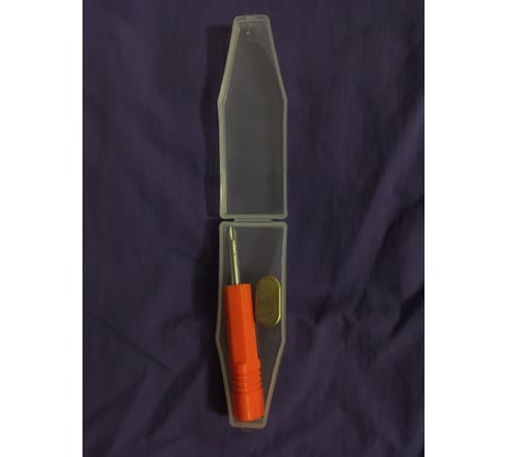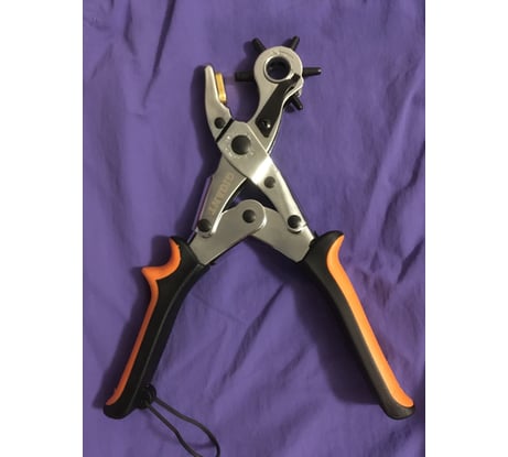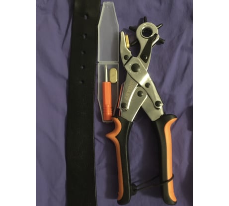 Отлично просёк отверстия для моего кожаного ремня. На фото это три нижних отверстия. Так же в комплекте идет запасная наковаленка и отвертка для её установки.