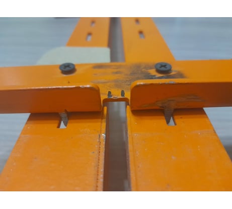 Основным недостатком в данной конструкции является направляющая для перпендикулярной резки. При чем недостатка в ней два, а именно: 1. Она болтается в пазах, что влияет на ровность реза 2. Прочность данной детали. Один из зацепов просто оторвался при резке (все дело в точечной сварке которая была сделана, а после обточена со стороны в которую упирается ламинатина) Если производитель читает это, пожалуйста обратите внимание на эту деталь! Ей нехватает жесткости крепления и прочности...