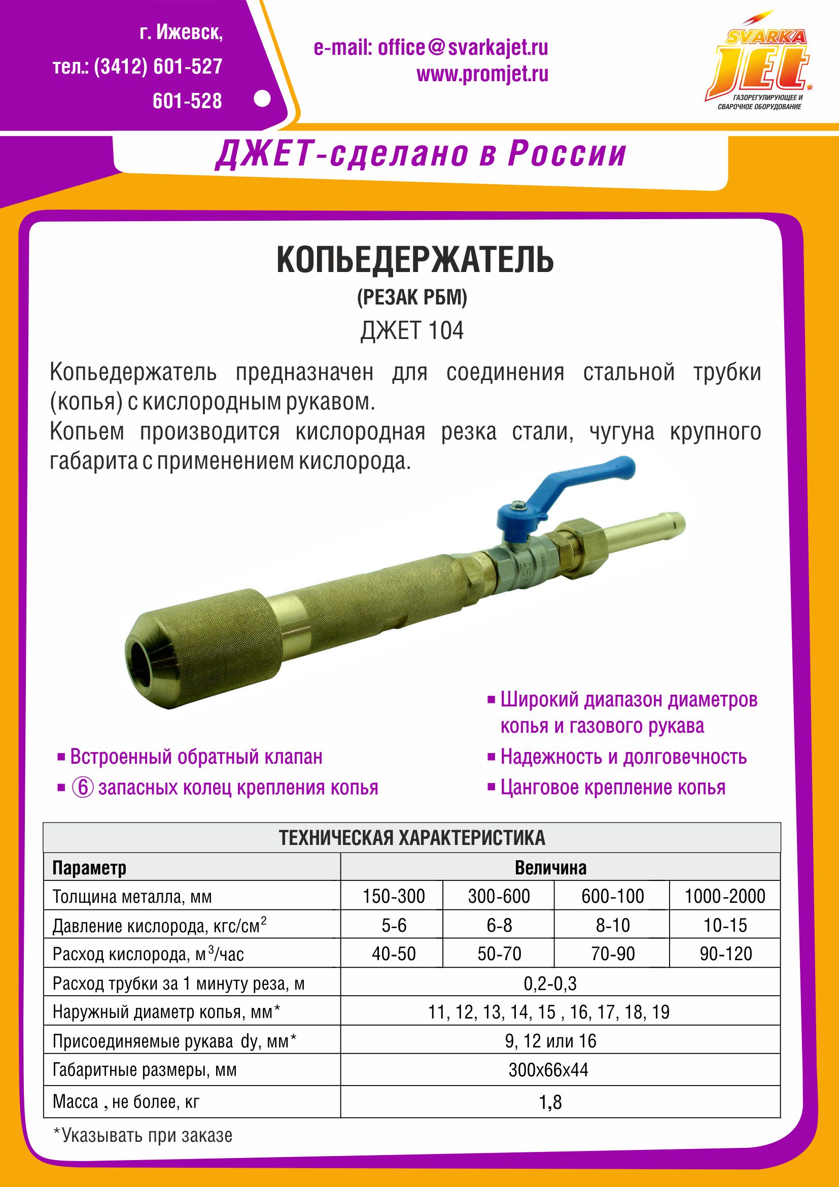 Копьем производится кислородная резка стали, чугуна крупного габарита с применением кислорода.