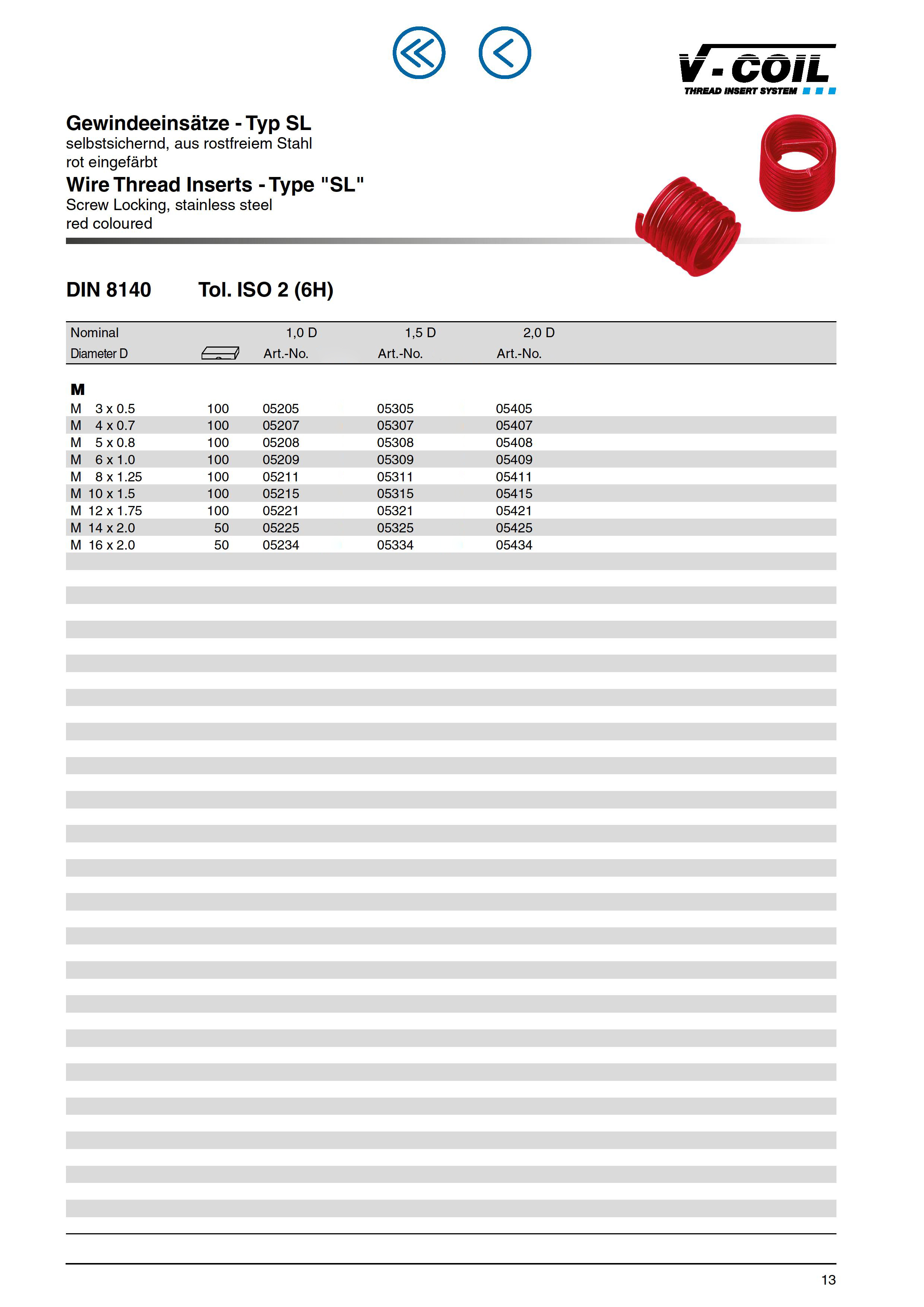 - Внешняя резьба вставки без зазора (ISO1 4h), не проворачивается в ремонтной резьбе