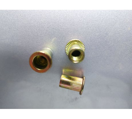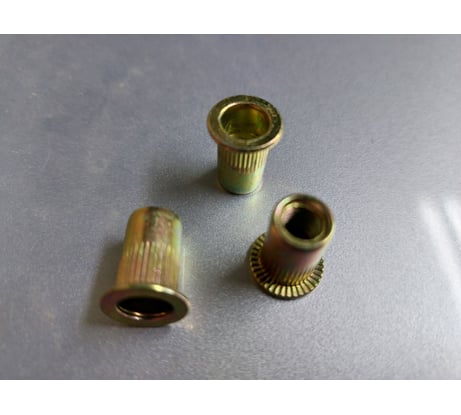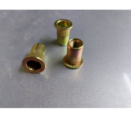 Заклепочные гайки имеют цилиндрический буртик с накаткой, благодаря которому они более плотно прилегают к скрепляемому элементу.