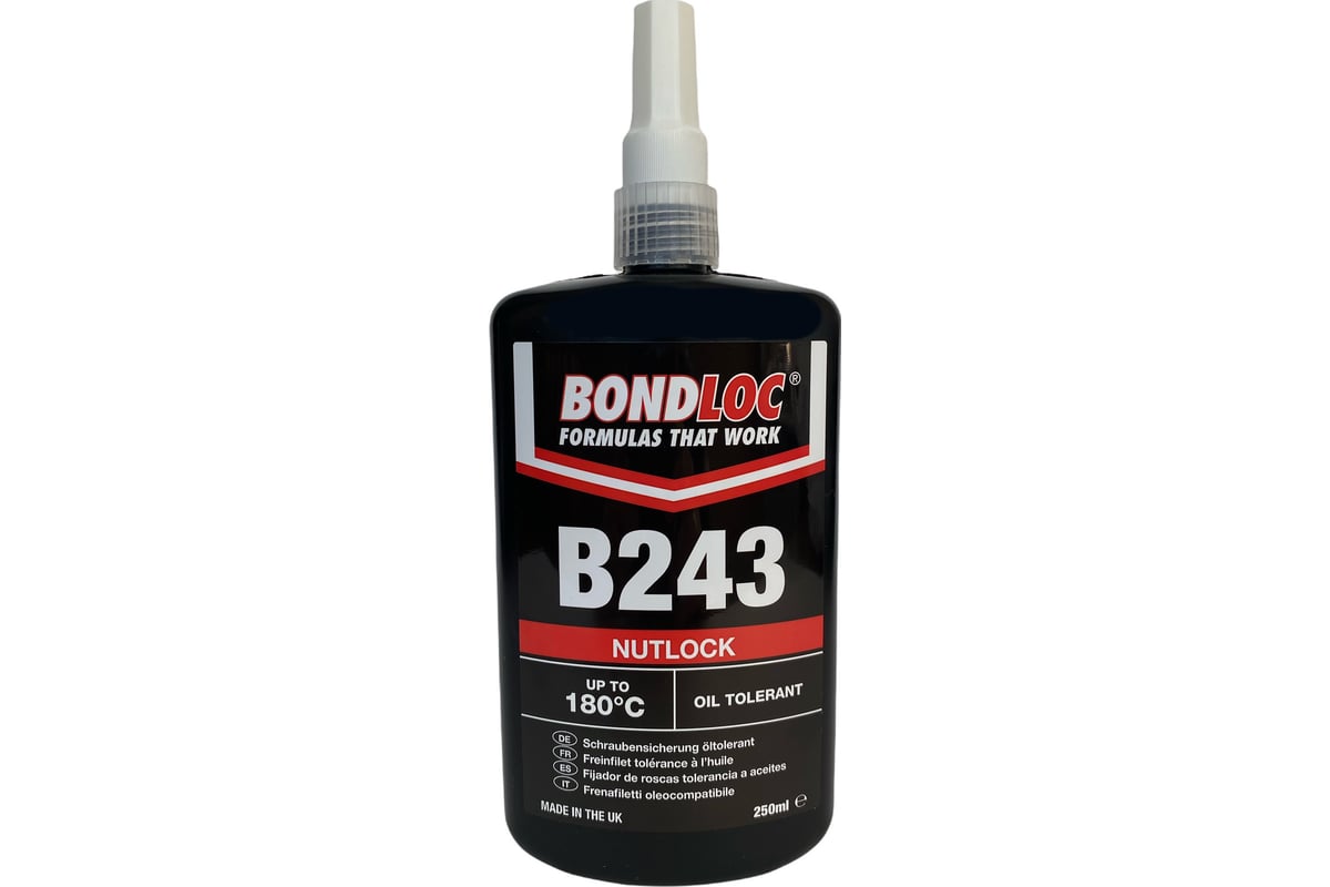 Резьбовой фиксатор средней прочности Bondloc B243 250 мл B243250ML предназначен для фиксации и герметизации резьбовых соединений. Заменяет традиционные средства фиксации такие, как стопорные шайбы и пластиковые вставки. Отличительной особенностью данного классического фиксатора является способность работать на слегка загрязненных металлических поверхностях (замасленных, содержащих небольшое количество смазок или различного типа СОЖ). Удобен при нанесении, разборка зафиксированного узла возможна ручным инструментом.