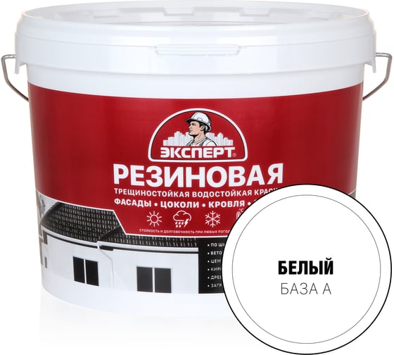 Резиновая эластичная краска ЭКСПЕРТ 9 л 27933 для фасадов, кровли, стен и потолков внутри помещений. Обладает очень хорошей адгезией и эластичностью. Идеально подходит для окраски стен в новых строениях. Применяется для окраски бетона, пенобетона, цементных и акриловых штукатурок, кирпича, шифера, керамической черепицы, древесины, загрунтованного металла, гипсокартона и т.д.