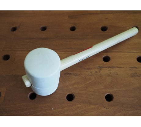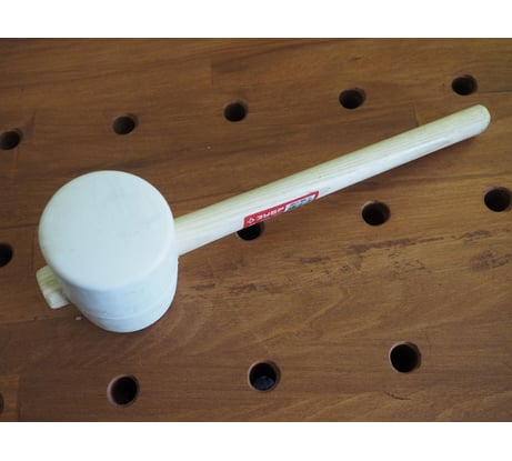 Муж задумал поработать с оцинкованным металлом, изготовить отливы для дома с этой целью и была куплена киянка. Выбирали специально белую (чтобы не пачкать металл) и увесистую. Отдача не большая, но есть. С рукоятки не слетает пока. Это очень важно, а то начитались отзывов о киянках с ручкой на клею, которые после интенсивной работы разваливаются.