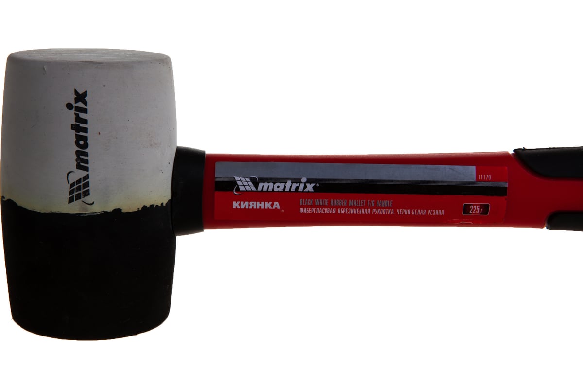 Резиновая киянка 225гр MATRIX 11170 предназначена для укладки напольной или тротуарной плитки во время монтажных или строительных работ. Боек из черно-белой резины не оставляет следов на светлых поверхностях. Обрезиненная фибергласовая рукоятка не скользит в руке и амортизирует удар.