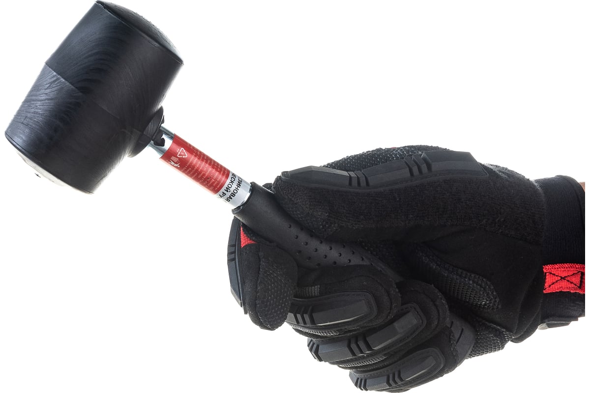 Прочная стальная рукоять выдерживает большие нагрузки. Имеется нескользящая оплетка из резины для лучшего удержания киянки.