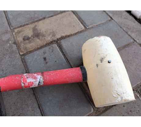 Хорошая киянка, ухватистая ручка, не выскальзывает. Укладывал тротуарную плитку, устанавливал бордюр, устанавливал водосток на 30 м2, выдержала, чуть штырек вылез (на втором фото видно). Следов не оставляет, не крошится, оптимальный вес для таких работ, во всяком случае для меня.