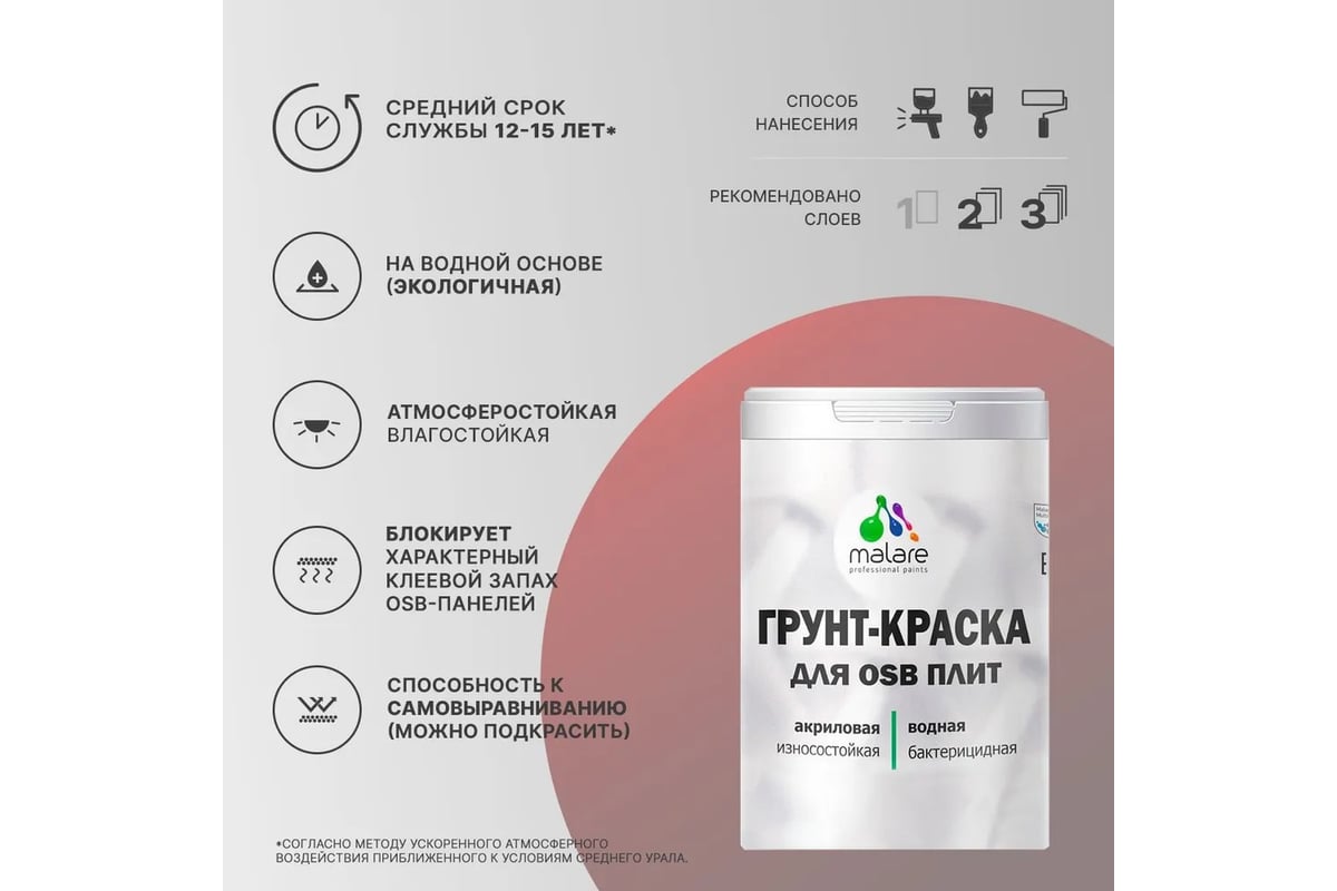 Резиновая краска для ОСБ плит MALARE акриловая, для дерева, без запаха, полуглянцевая, терракотовый, 2 кг 4660504438943
