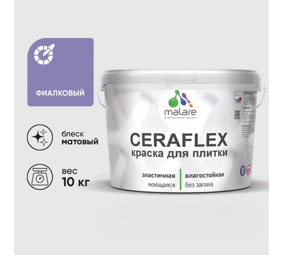 Краска акриловая MALARE Ceraflex для плитки, фиалковый, матовый, 10 кг 2005213569007