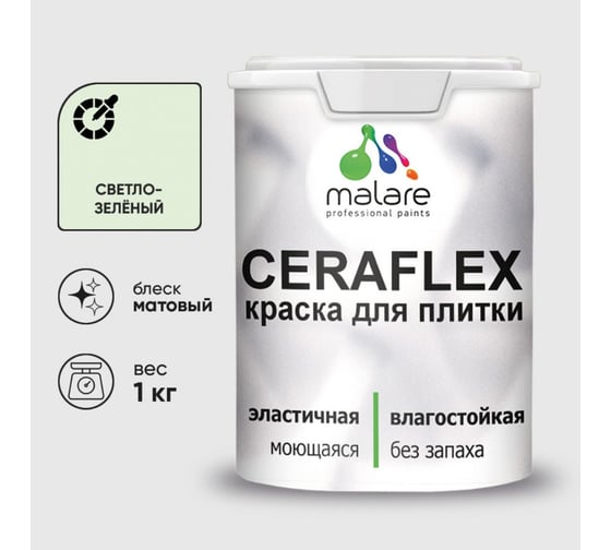 Краска акриловая MALARE Ceraflex для плитки, светло-зеленый, матовый, 1 кг 2005245159009