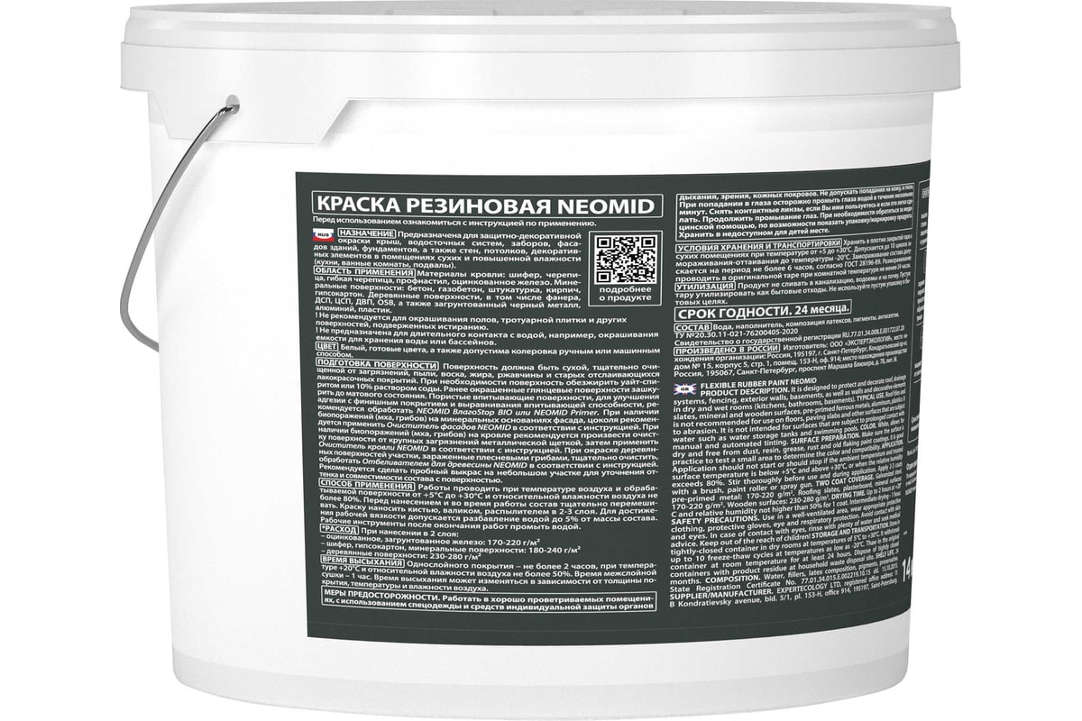Резиновая краска Neomid Серый 14 кг Н-КраскаРез-14-Сер предназначена для защитно-декоративной окраски поверхностей из дерева, бетона, газобетона, материалов жесткой и мягкой кровли.