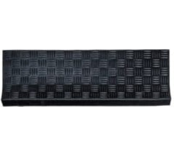 Коврик из прочной резины прекрасно выдерживает сильные нагрузки, защищая лестницу от повреждений и истирания. Лестничный элемент рассчитан на частое использование: выдерживает пешеходное движение с обувью разного типа, не теряя первоначальных свойств.
