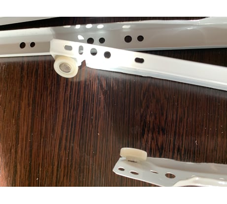 Толщина металла, выбранная для изготовления направляющий, вполне достаточная. Кроме того, в конструктиве использованы тисненые ребра жесткости, что добавляет направляющим прочность. Окраска лежит ровно. Колесики установлены плотно,без излишнего люфта.