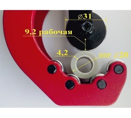 В действительности резать можно только металлопластиковые трубы диаметром до 20 мм, трубу 25 мм не дорезает стенку - приходится дорабатывать ножницами. Полипропиленовые трубы не дорезает до конца стенку даже 20 мм. На поверхности опоры трубы на инструмент заусенцы - надо обработать напильником, иначе на трубе остаются борозды глубокие.