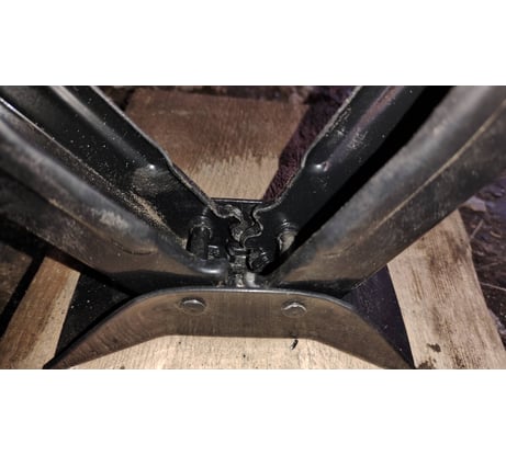 На третьем колесе Киа Соул успел отследить когда это нечто поплыло. Вовремя. Кое-как удалось переобуться. Опорная площадка деформировалась. Нижний храповик опор деформировался. Вся конструкция в узлах стала танцевать.