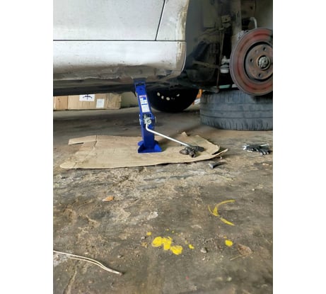 После двух подъемов сломалась резиновая опора и согнулась ее постель. После пятнадцати подъемов перескочили зубья боковых частей домкрата, что привело к срыву во время работы и замятию порога автомобиля. Это случилось из-за очень узких зубьев боковых частей и большого люфта.