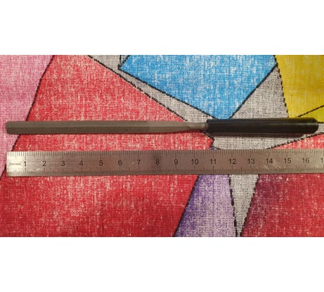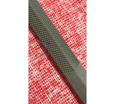 Рисунок и равномерность нанесения насечек хорошие, даже чуть лучше, но на одной стороне от острия на две трети длины шириной чуть больше миллиметра вдоль торцевого края производственный дефектик - то ли непроточка, то ли в этом месте основание чуть тоньше, при этом торцевые зубья есть по всей длине с обоих сторон и это именно зубья. Ширина надпила торцом около 0.7мм . Поработал по четырехмиллиметровой прокатной стали с нажатием сто проходов - рисунок немножко лизнулся (ожидаемо в большей степени по центру). Ромб основания без видимых перекосов. При нажатии допускает небольшой упругий изгиб (сразу не ломается). На 10мм приходится в среднем 20зубьев - это вроде как второй класс (точно не 00). Общая длина 165мм, длина рабочей части (с насечками) 78мм, ширина 7.1мм, толщина 3.2мм, длина ручки 57мм, диаметр конусной ручки от 7.3мм до 9.2мм, вес 17.30г. Изначально намагниченность отсутствует. Магнитится и намагничивается. По случаю проводил ежегодное обновление технической аптечки и данный ромбовидный надфиль особо порадовал тем, что острые углы граней представляют собой реальную пилку (с насечками по всей длине), что встречается не всегда (чаще попадаются ровные или вырожденно-ступленная насечка). Надфиль хороший, но надо понимать, что для регулярной обработки сталей применяются надфили из другой ценовой категории независимо от страны-производителя.