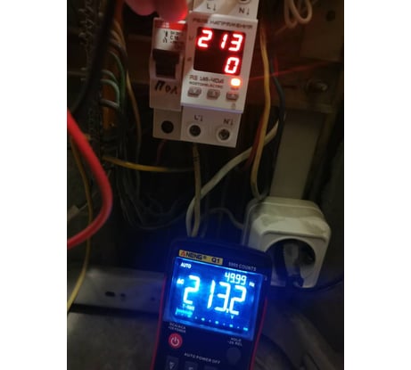 Куплен по причине выхода из строя стиралки из-за бросков напряжения. Надеюсь, что поможет в другой раз. Выбирался среди трех производителей после прочтения обзора. Меню интуитивно понятное. Некоторые функции только пришлось подсмотреть в руководство. Цифры хорошо читаемы (есть регулировка яркости). Кроме напряжения сети и потребляемого тока можно глянуть и мощность. Никогда не задумывался, что чайник столько потребляет :) Сравнил показания реле с бытовым мультиметром (на фото).