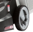 Перемещение Задние колеса увеличенного диаметра способствуют повышению проходимости и маневренности при обработке газона не неровных участках. |