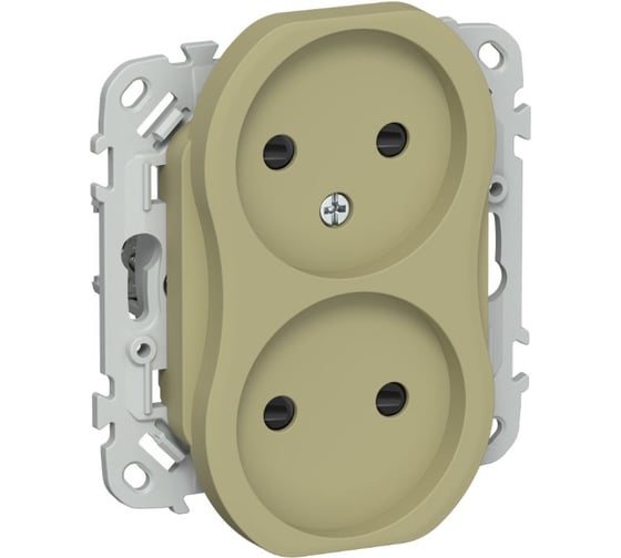 Розетка 2-я IEK FLITE без заземления с защитными шторками безвинтовое крепление 10А РСш02-1-ФлО оливковый FI-R23-10-1-K26