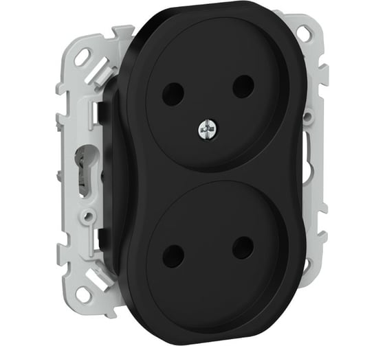 Розетка 2-я IEK FLITE с заземлением с защитными шторками безвинтовое крепление 10А РС02-1-ФлЧ черный FI-R20-10-1-K02