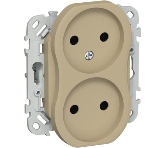 Розетка 2-я IEK FLITE с заземлением с защитными шторками безвинтовое крепление 10А РС02-1-ФлХ хаки FI-R20-10-1-K59