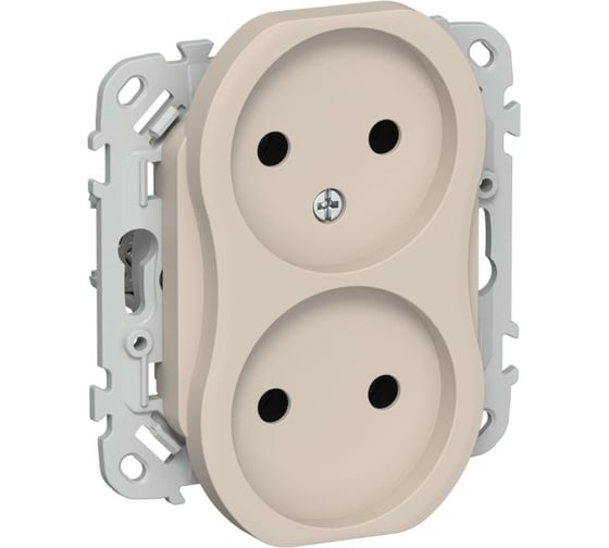 Розетка 2-я IEK FLITE с заземлением с защитными шторками безвинтовое крепление 10А РС02-1-ФлЛ льняной FI-R20-10-1-K88