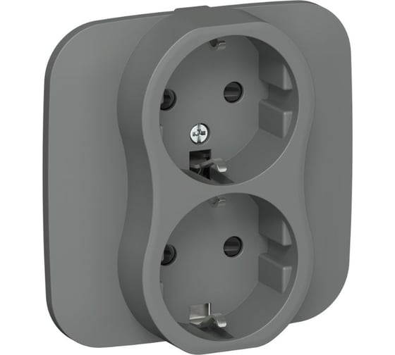 Розетка 2-я IEK FLITE с заземлением с защитными шторками безвинтовое крепление 16А РСш12-1-А-ФлМА мокрый асфальт FI-R24A-16-1-K80