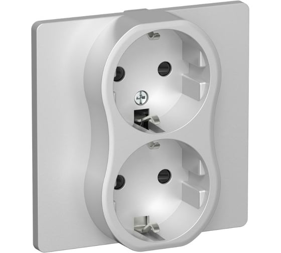 Розетка 2-я IEK FLITE с заземлением с защитными шторками безвинтовое крепление 16А РСш12-1-К-ФлА алюминий FI-R24C-16-1-K47