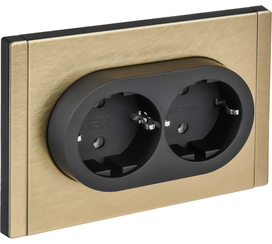 Розетка 2-я IEK FORTE&PIANO с заземлением, без защитных шторок, безвинтовое крепление, 16А FP624M шампань FP-R21-16-1-M-K37