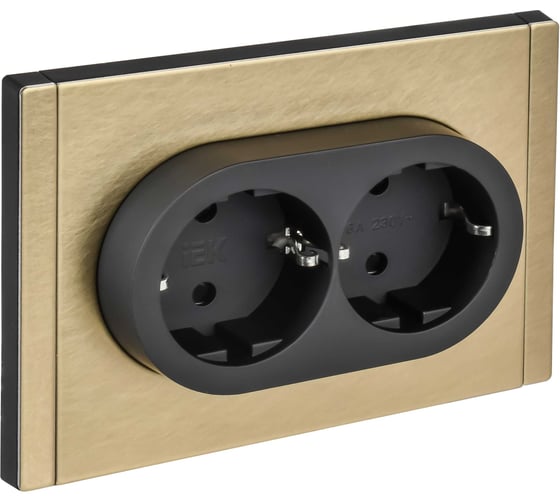 Розетка 2-я IEK FORTE&PIANO с заземлением, с защитными шторками, безвинтовое крепление, 16А FP623M шампань FP-R24-16-1-M-K37